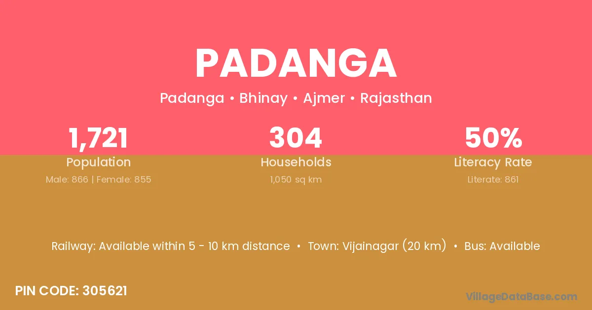 Vijainagar (20 km) is the nearest town to Padanga village for major economic activities and is located approximately 20 km away.