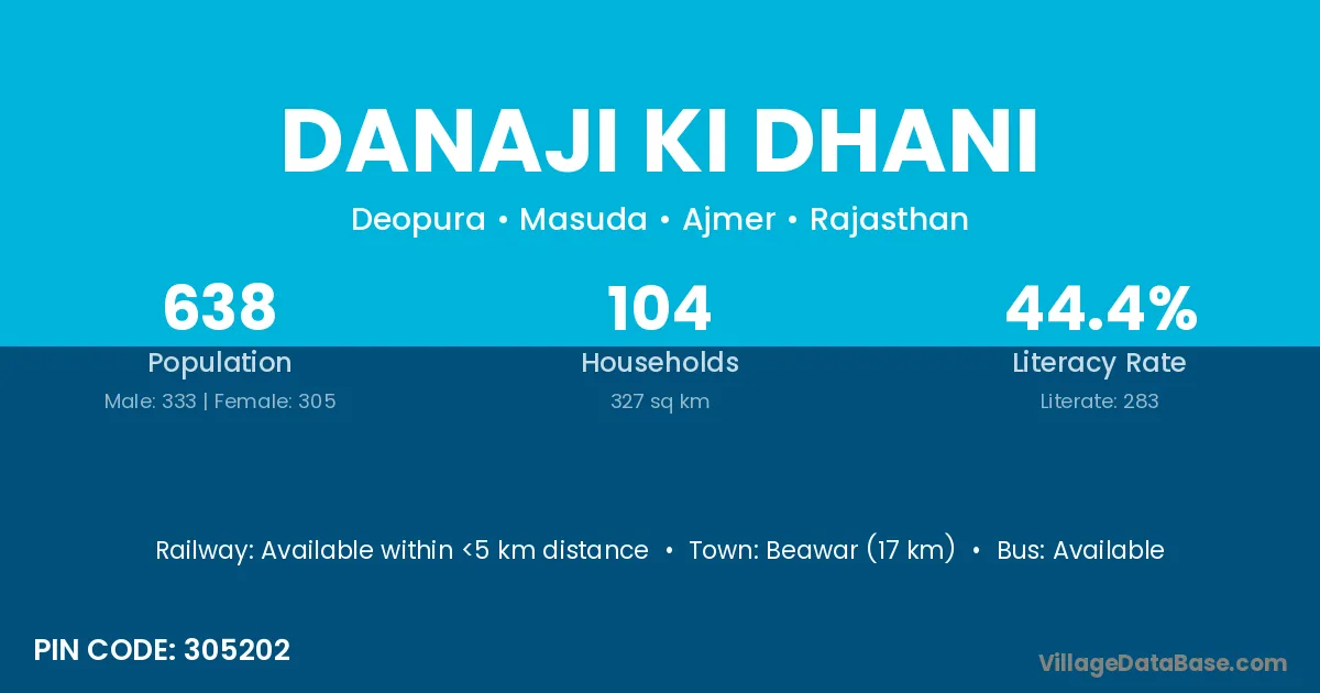 Danaji Ki Dhani village has a total population of 638 people, of which 333 are males and 305 are females.