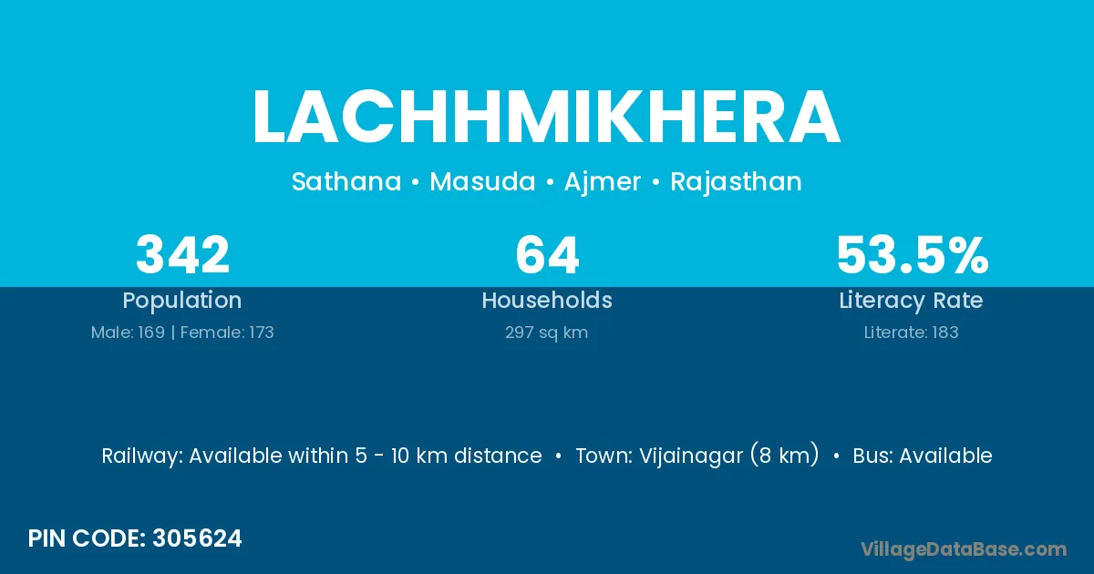 Vijainagar (8 km) is the nearest town to Lachhmikhera village for major economic activities and is located approximately 8 km away.