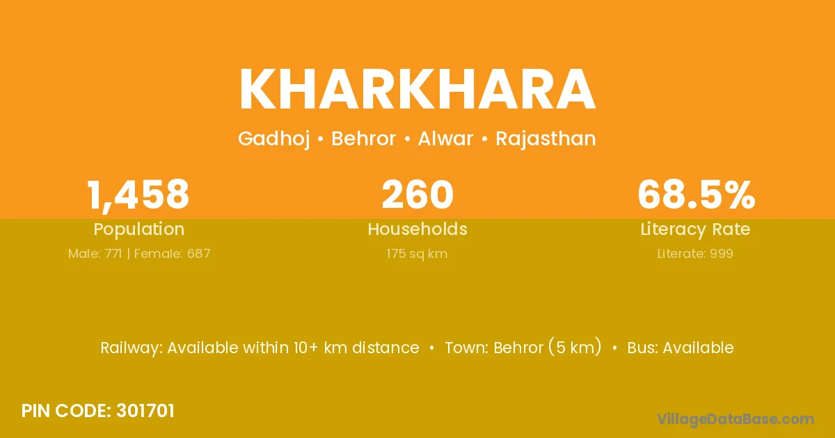 Kotputli (9 km) is the nearest town to Kharkhara village for major economic activities and is located approximately 9 km away.