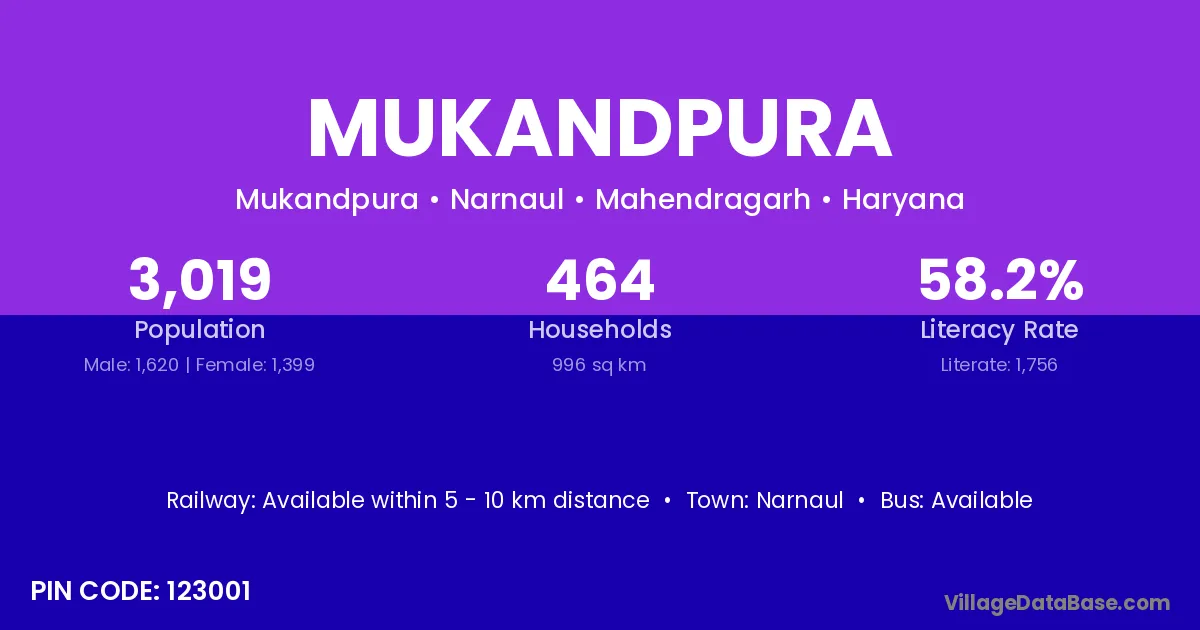 According to Census 2011 information, the village code of Mukandpura village is 301402.