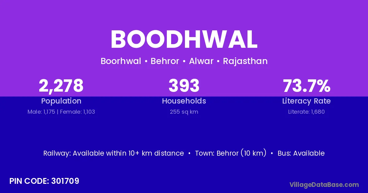 Behror (10 km) is the nearest town to Boodhwal village for major economic activities and is located approximately 10 km away.