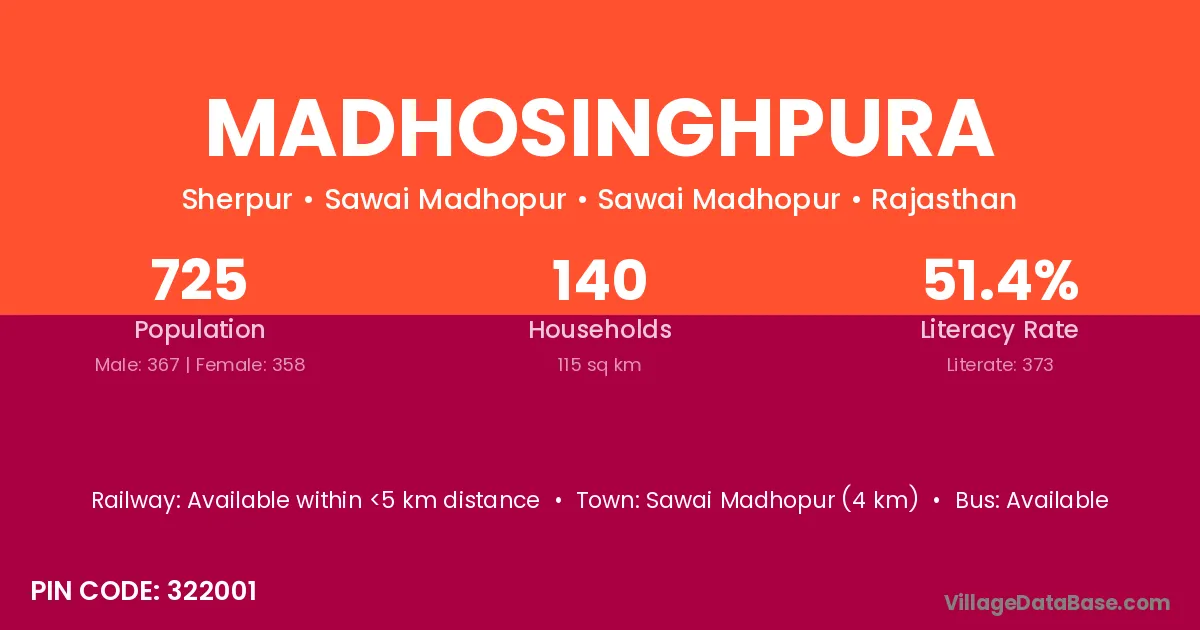 Behror (15 km) is the nearest town to Madhosinghpura village for major economic activities and is located approximately 15 km away.
