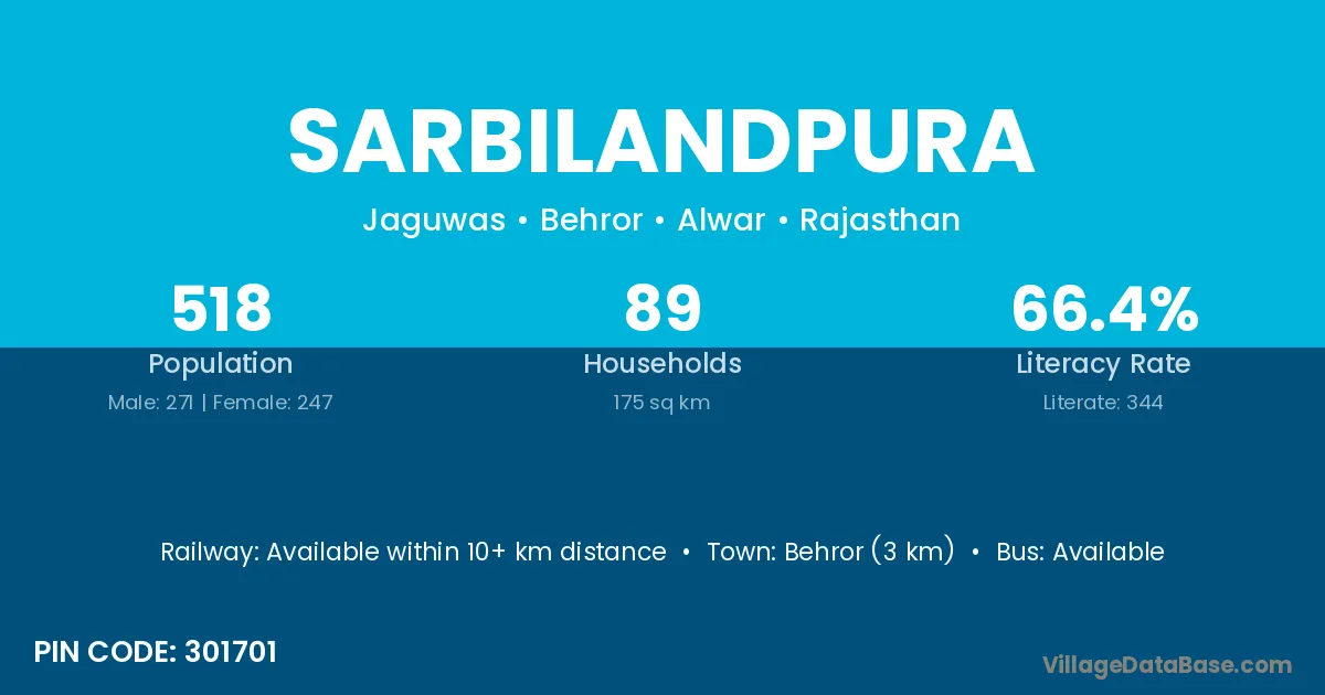 Behror (3 km) is the nearest town to Sarbilandpura village for major economic activities and is located approximately 3 km away.