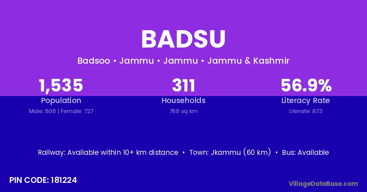 According to Census 2011 information, the village code of Badsu village is 301035.