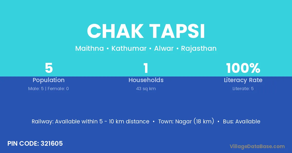 Chak Tapsi village has a total population of 5 people, of which 5 are males and 0 are females.
