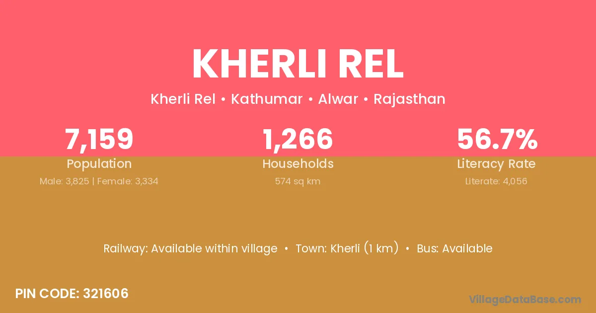 Kherli (1 km) is the nearest town to Kherli Rel village for major economic activities and is located approximately 1 km away.