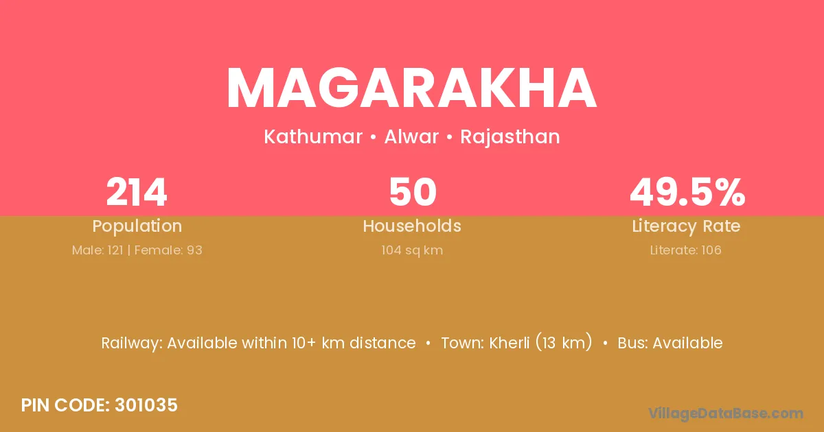Kherli (13 km) is the nearest town to Magarakha village for major economic activities and is located approximately 13 km away.