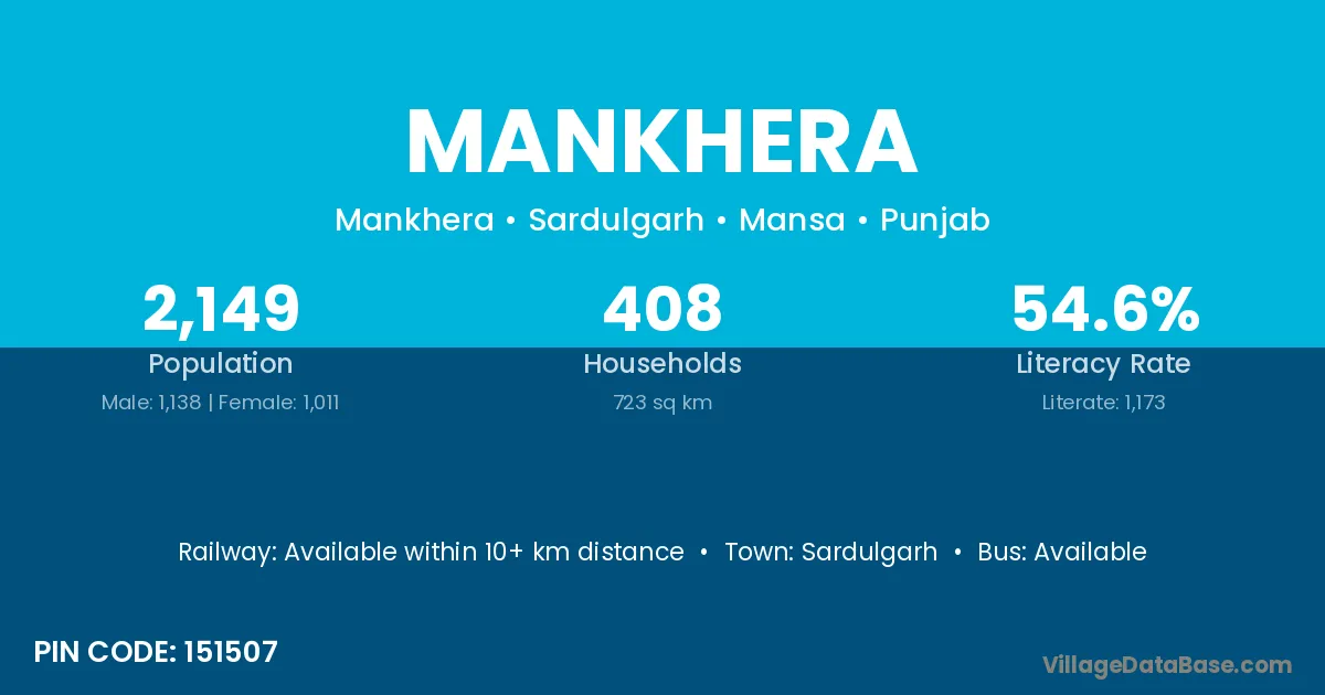 Nagar (15 km) is the nearest town to Mankhera village for major economic activities and is located approximately 15 km away.