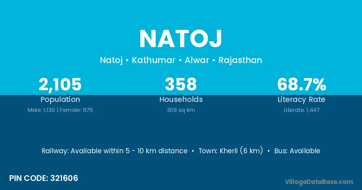 Kherli (6 km) is the nearest town to Natoj village for major economic activities and is located approximately 6 km away.