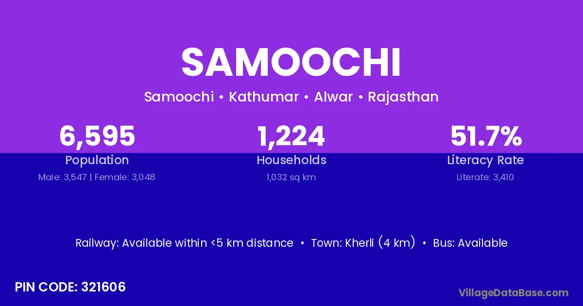 Kherli (4 km) is the nearest town to Samoochi village for major economic activities and is located approximately 4 km away.