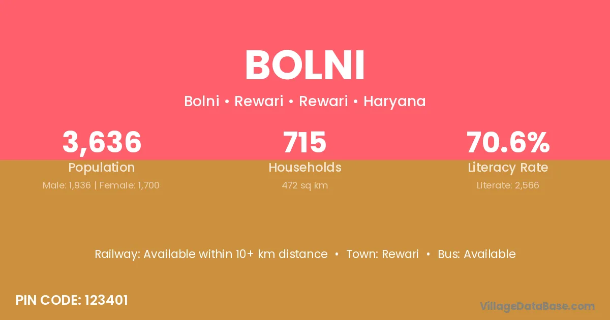 Alwar (46 km) is the nearest town to Bolni village for major economic activities and is located approximately 46 km away.