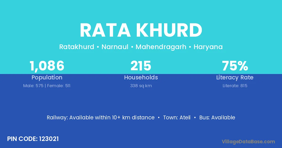 The literacy rate of Rata Khurd village is 56.08%. Male literacy stands at 67.34% and female literacy at 45.20%.