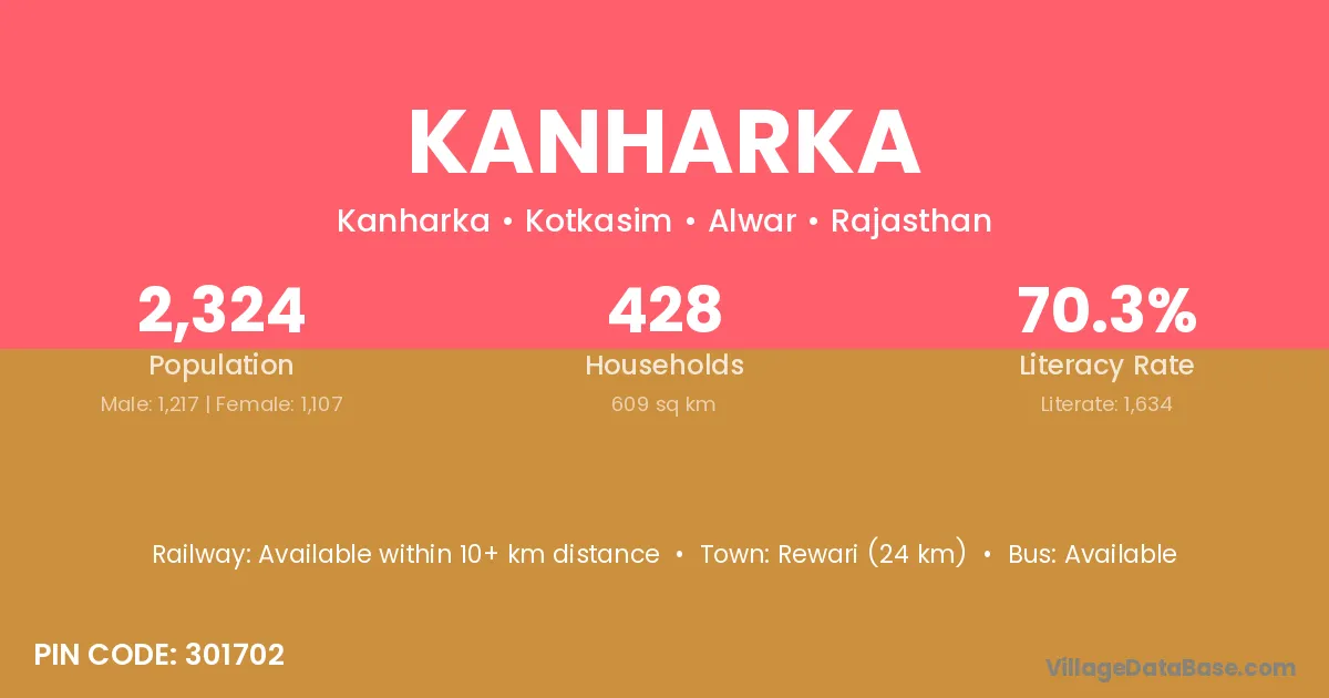 Rewari (24 km) is the nearest town to Kanharka village for major economic activities and is located approximately 24 km away.