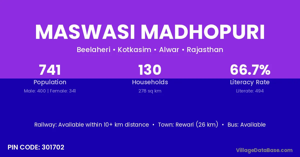 According to Census 2011 information, the village code of Maswasi Madhopuri village is 301702.