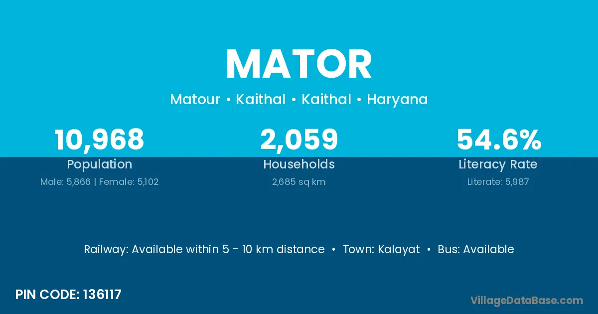 Khairthal (5 km) is the nearest town to Mator village for major economic activities and is located approximately 5 km away.