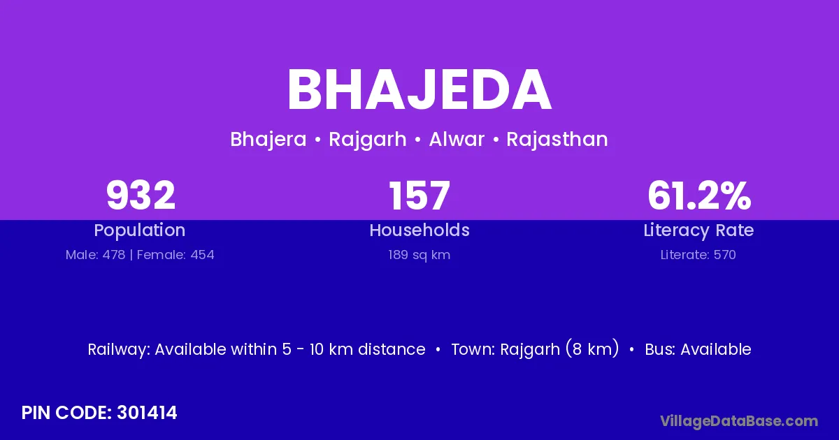 Rajgarh (8 km) is the nearest town to Bhajeda village for major economic activities and is located approximately 8 km away.