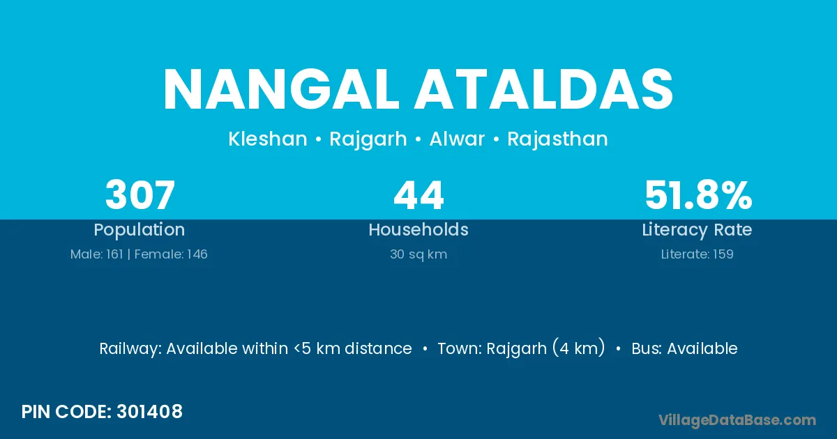 Rajgarh (4 km) is the nearest town to Nangal Ataldas village for major economic activities and is located approximately 4 km away.
