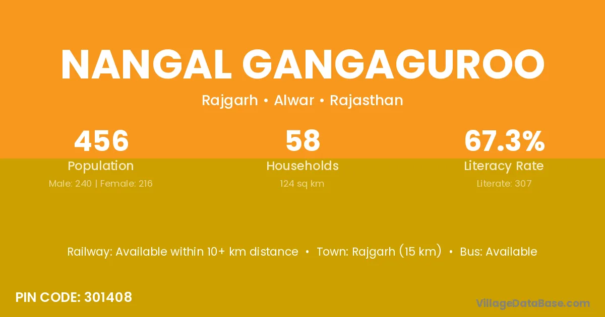 Nangal Gangaguroo village has a total population of 456 people, of which 240 are males and 216 are females.