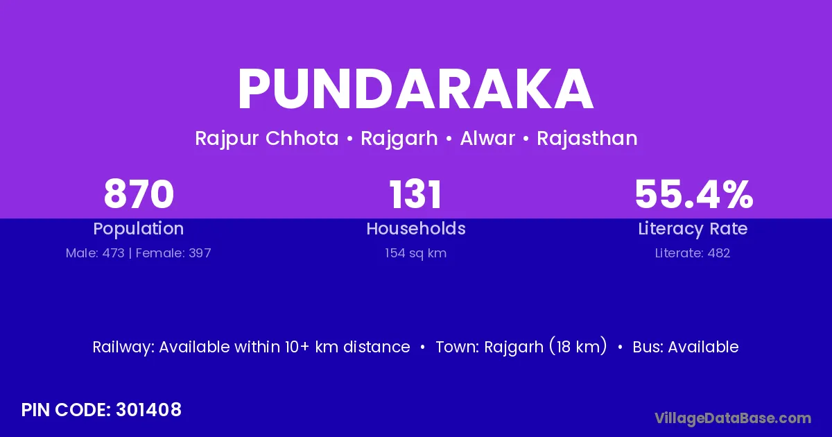Rajgarh (18 km) is the nearest town to Pundaraka village for major economic activities and is located approximately 18 km away.