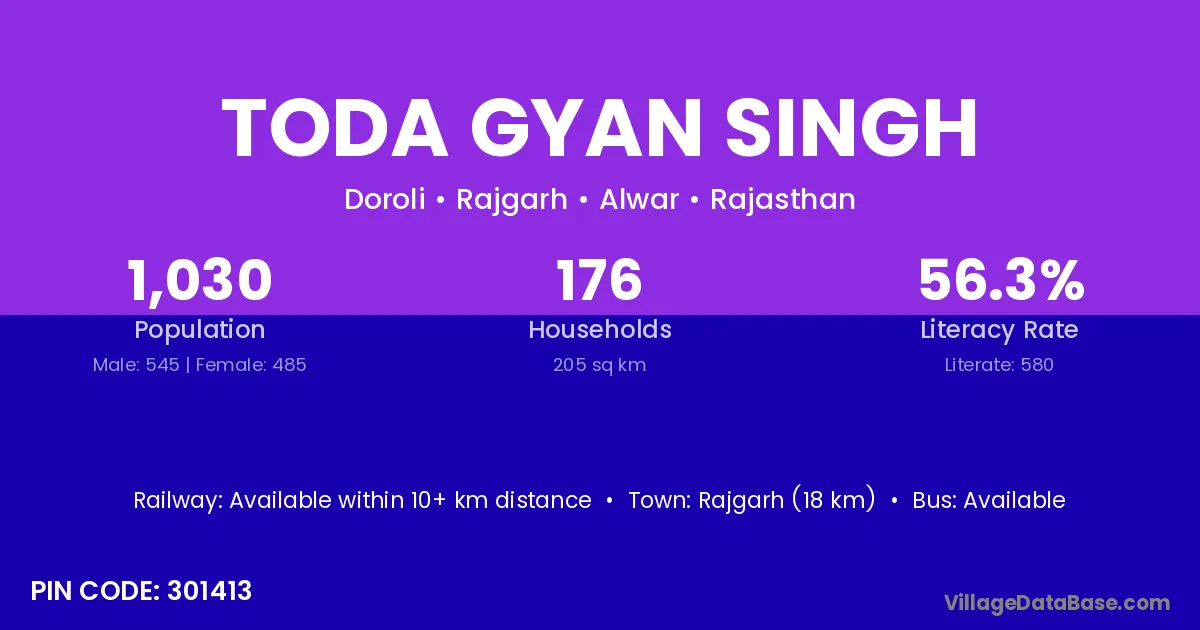 According to Census 2011 information, the village code of Toda Gyan Singh village is 301413.