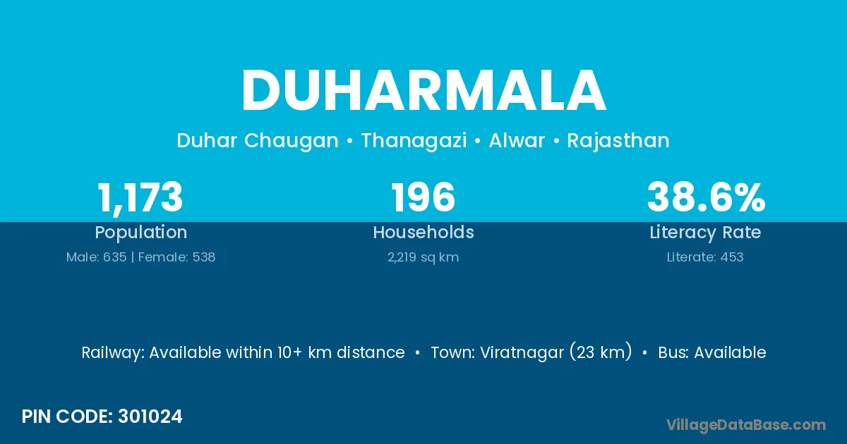 Viratnagar (23 km) is the nearest town to Duharmala village for major economic activities and is located approximately 23 km away.