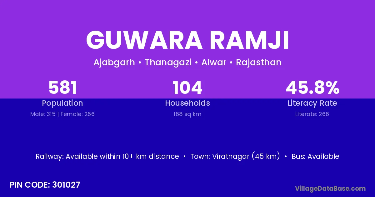 Viratnagar (45 km) is the nearest town to Guwara Ramji village for major economic activities and is located approximately 45 km away.