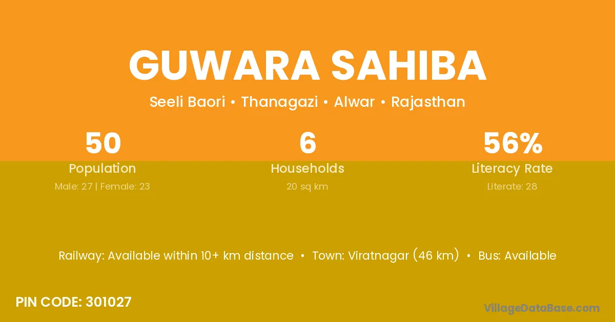 Guwara Sahiba village has a total population of 50 people, of which 27 are males and 23 are females.