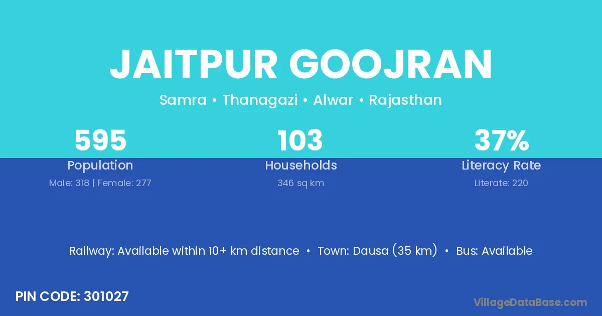 Dausa (35 km) is the nearest town to Jaitpur Goojran village for major economic activities and is located approximately 35 km away.