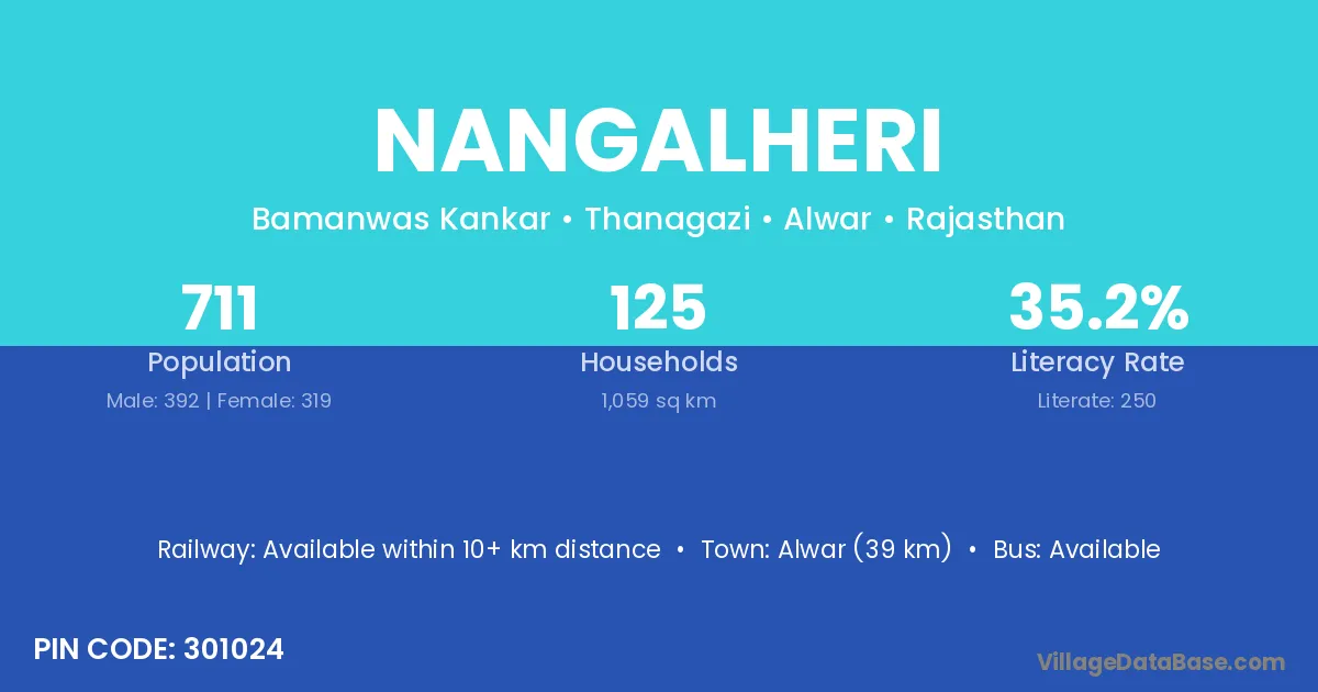 Alwar (39 km) is the nearest town to Nangalheri village for major economic activities and is located approximately 39 km away.