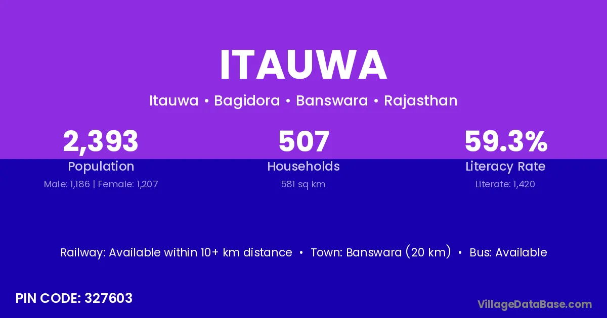 Banswara (20 km) is the nearest town to Itauwa village for major economic activities and is located approximately 20 km away.
