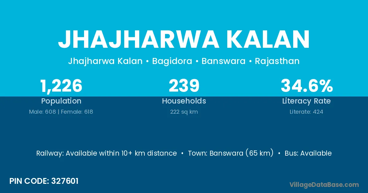 Banswara (65 km) is the nearest town to Jhajharwa Kalan village for major economic activities and is located approximately 65 km away.
