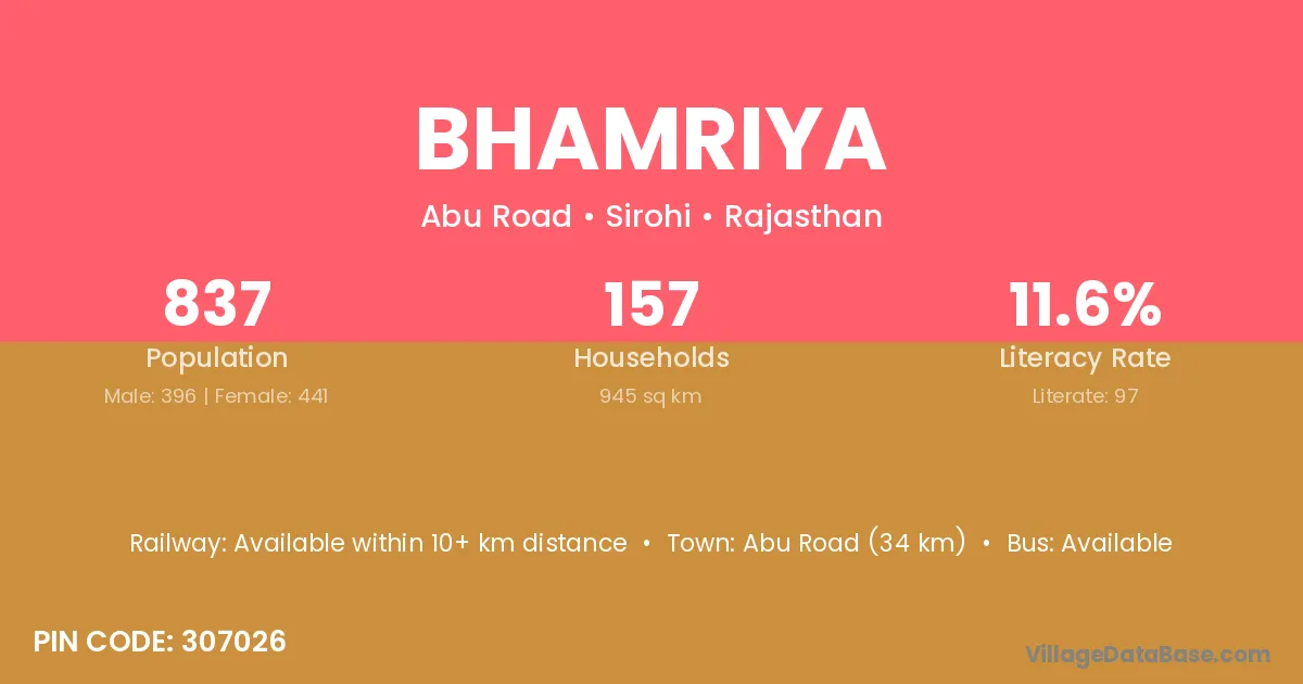 Banswara (18 km) is the nearest town to Bhamriya village for major economic activities and is located approximately 18 km away.