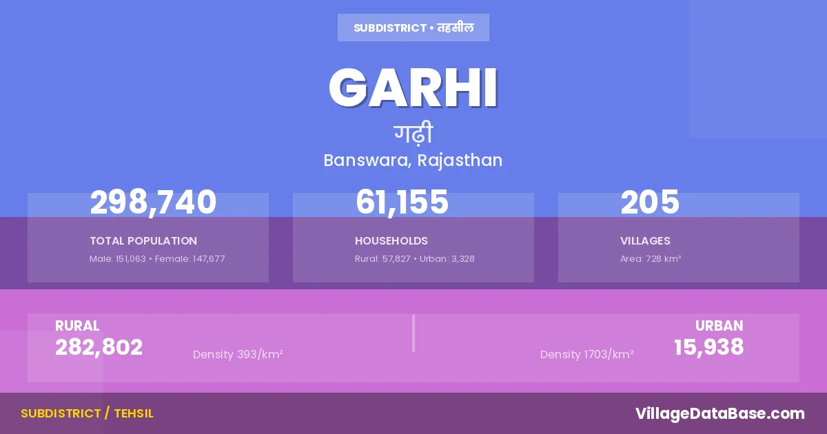 Garhi is a town and Tehsil in the Banswara district of the Rajasthan. In India, a Tehsil is a subdivision of a district responsible for the administration and revenue collection of a specific area within the district. Tehsils play a crucial role in the local governance structure, contributing significantly to the development and administration of their communities.