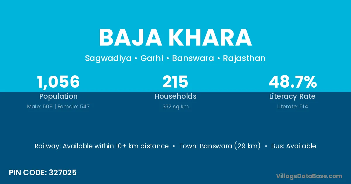 Banswara (29 km) is the nearest town to Baja Khara village for major economic activities and is located approximately 29 km away.