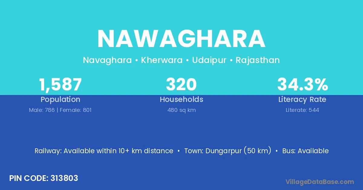 Banswara (55 km) is the nearest town to Nawaghara village for major economic activities and is located approximately 55 km away.