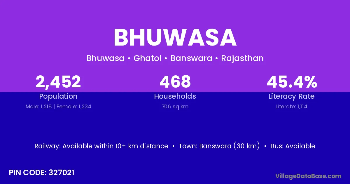 Banswara (30 km) is the nearest town to Bhuwasa village for major economic activities and is located approximately 30 km away.