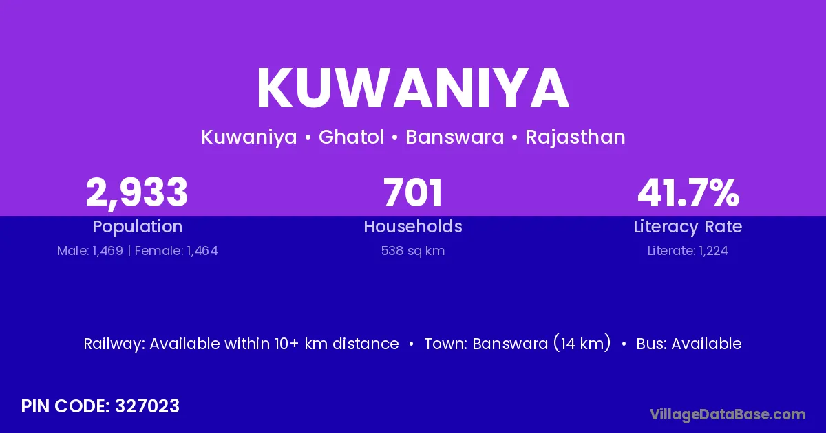 Banswara (14 km) is the nearest town to Kuwaniya village for major economic activities and is located approximately 14 km away.