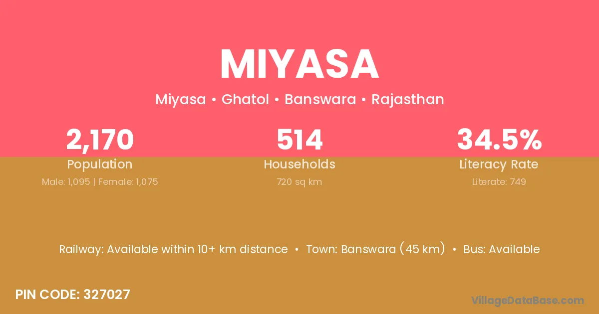 Banswara (45 km) is the nearest town to Miyasa village for major economic activities and is located approximately 45 km away.