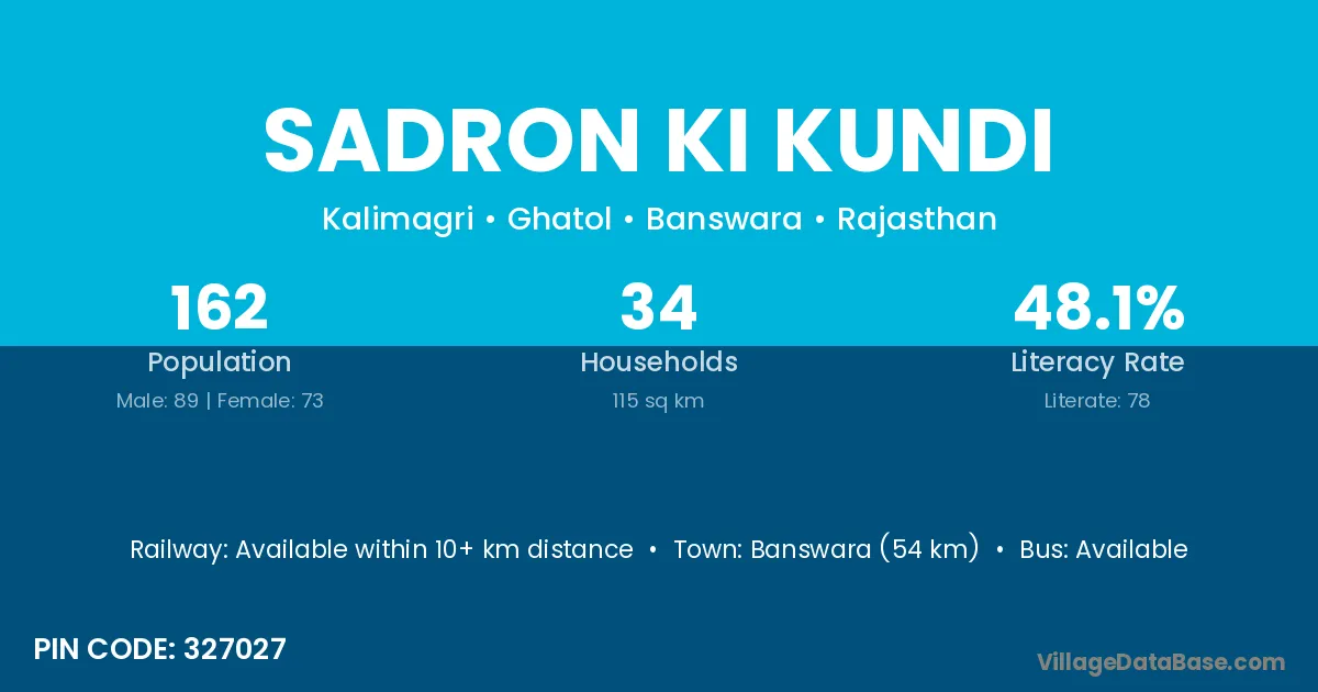 Banswara (54 km) is the nearest town to Sadron Ki Kundi village for major economic activities and is located approximately 54 km away.
