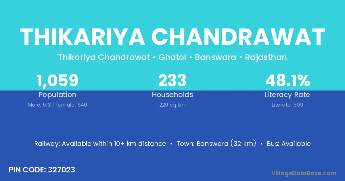 Thikariya Chandrawat village has a total population of 1,059 people, of which 513 are males and 546 are females.