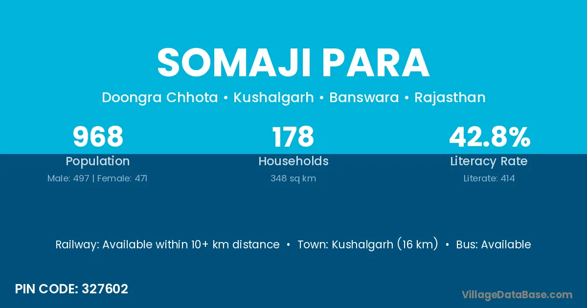 Somaji Para village has a total population of 968 people, of which 497 are males and 471 are females.