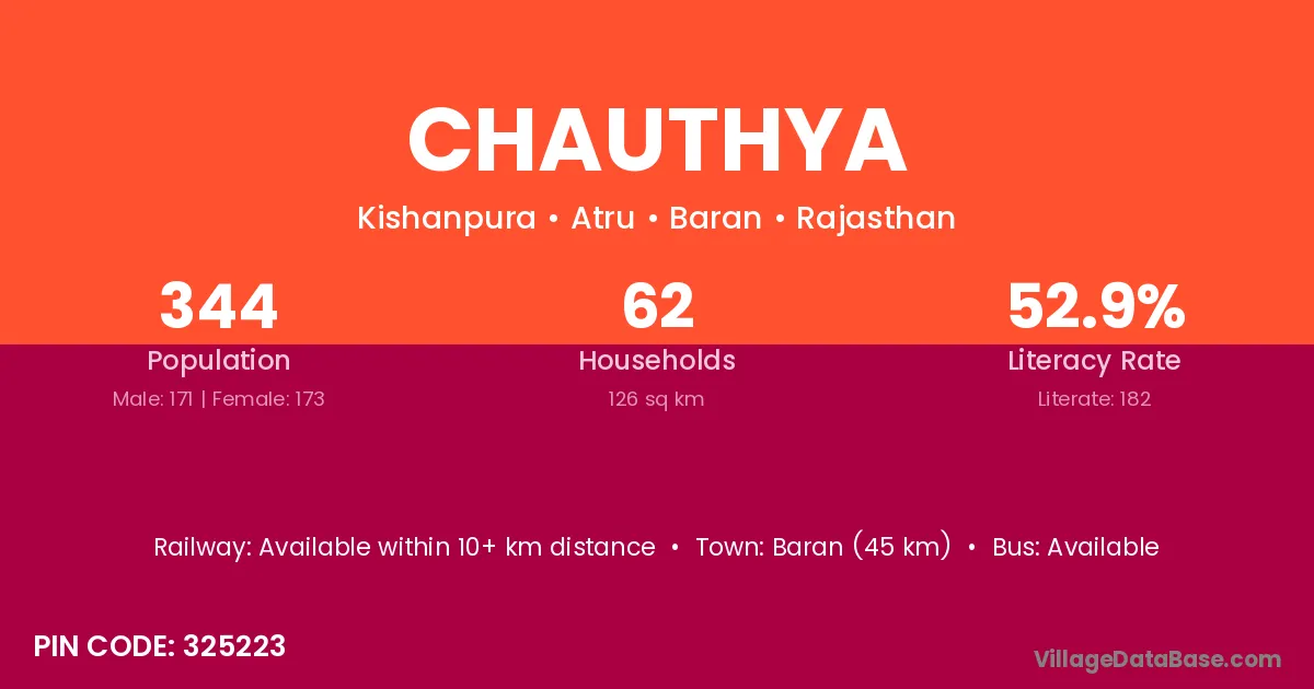 Baran (45 km) is the nearest town to Chauthya village for major economic activities and is located approximately 45 km away.