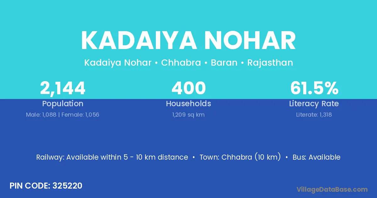 Chhabra (10 km) is the nearest town to Kadaiya Nohar village for major economic activities and is located approximately 10 km away.