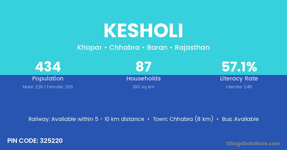 Chhabra (8 km) is the nearest town to Kesholi village for major economic activities and is located approximately 8 km away.