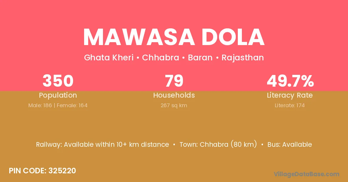 Chhabra (80 km) is the nearest town to Mawasa Dola village for major economic activities and is located approximately 80 km away.