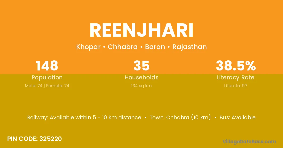 Chhabra (10 km) is the nearest town to Reenjhari village for major economic activities and is located approximately 10 km away.