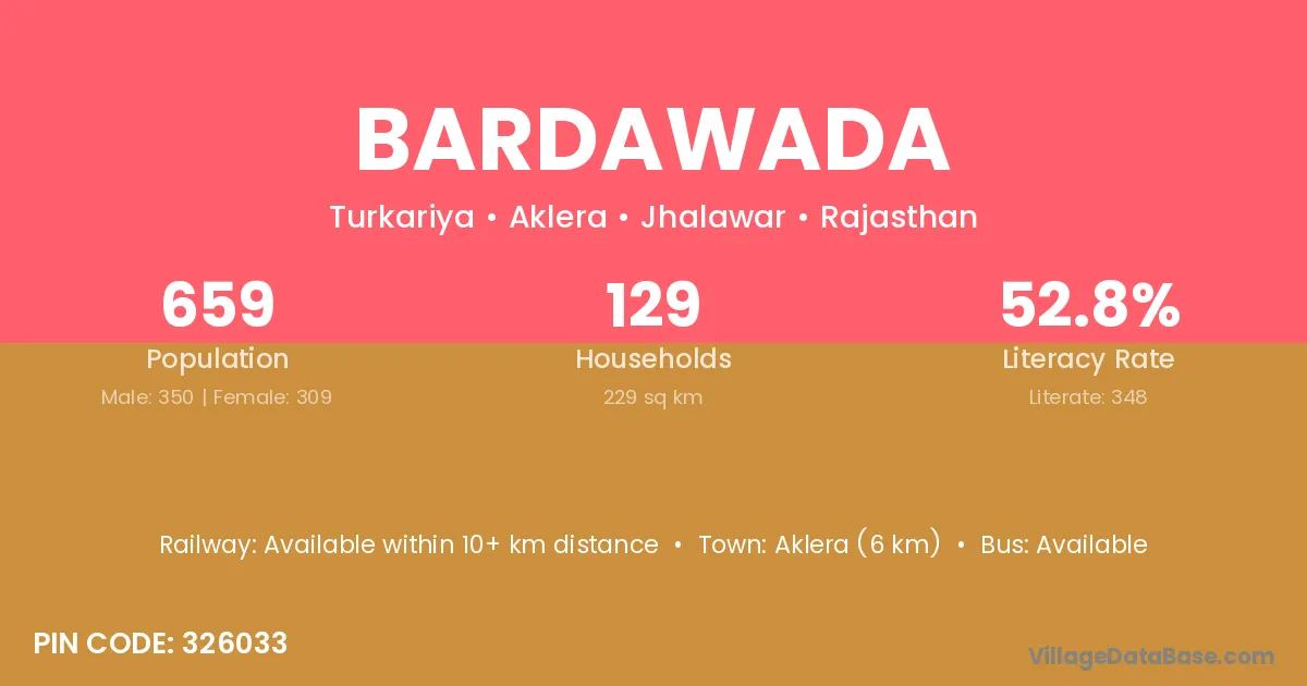 Chhabra (25 km) is the nearest town to Bardawada village for major economic activities and is located approximately 25 km away.