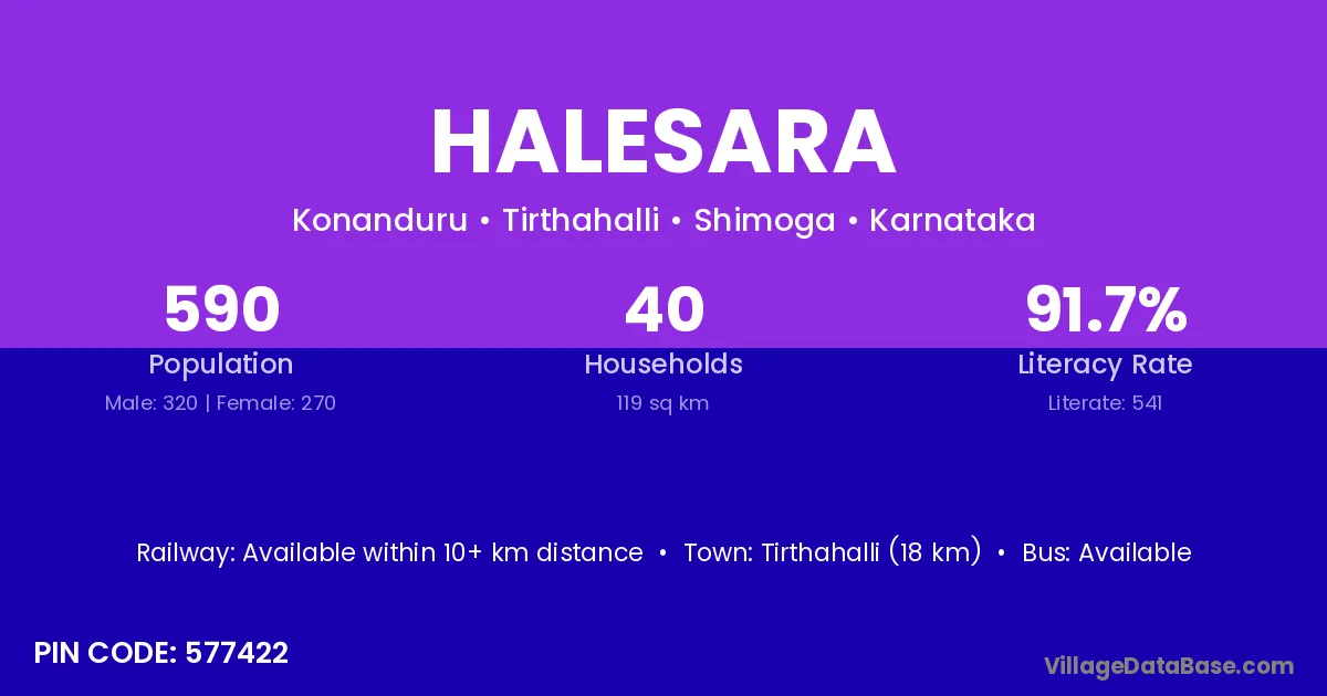 The literacy rate of Halesara village is 52.08%. Male literacy stands at 66.51% and female literacy at 36.08%.