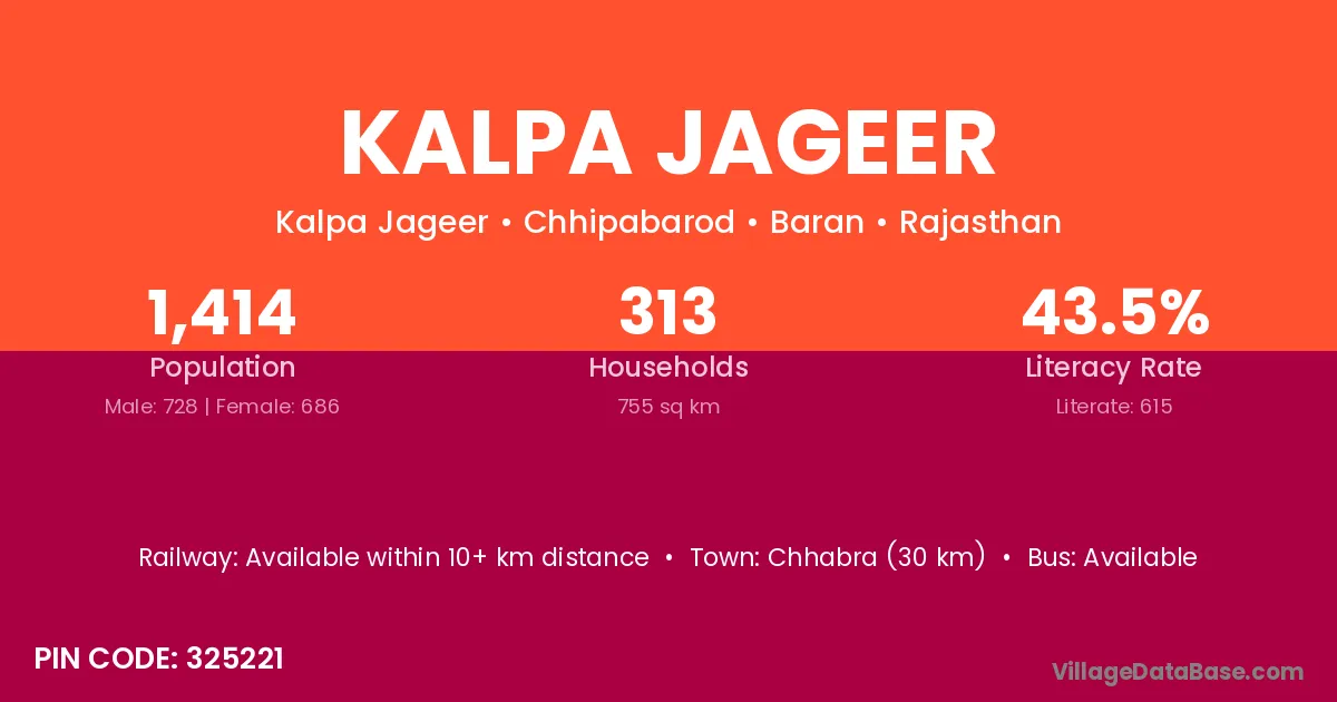 Chhabra (30 km) is the nearest town to Kalpa Jageer village for major economic activities and is located approximately 30 km away.